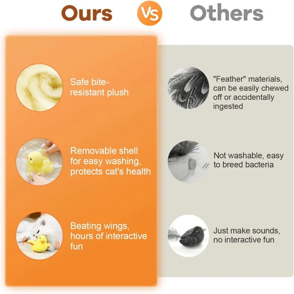 Every time your feline touches this cat kick toy, the automatic built-in motion sensor will activate and the cat duck toy will flap and vibrate like a real duck, inviting your cat to kick and play.