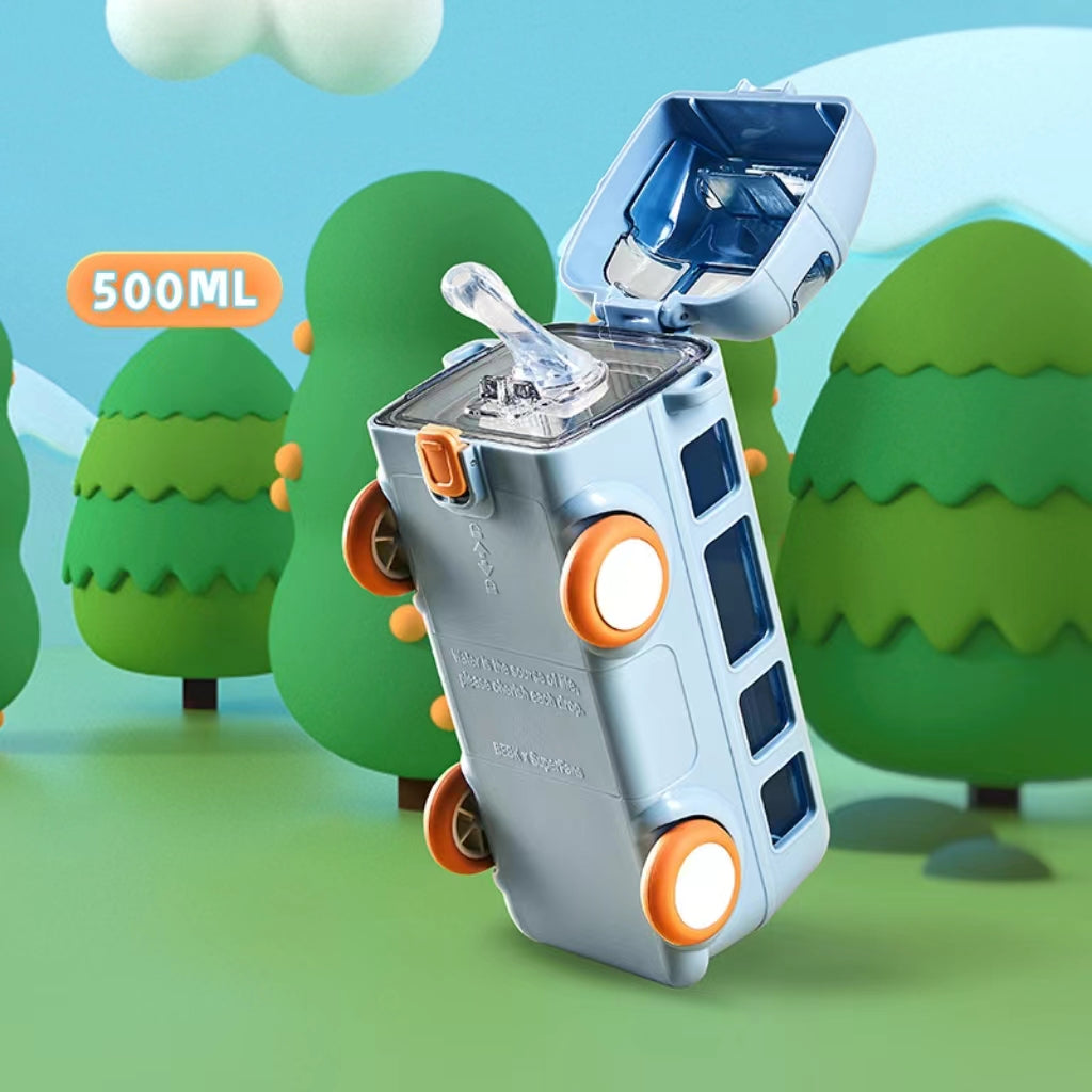 🔥500ML Bus Shaped Water Bottle With Straws🥛