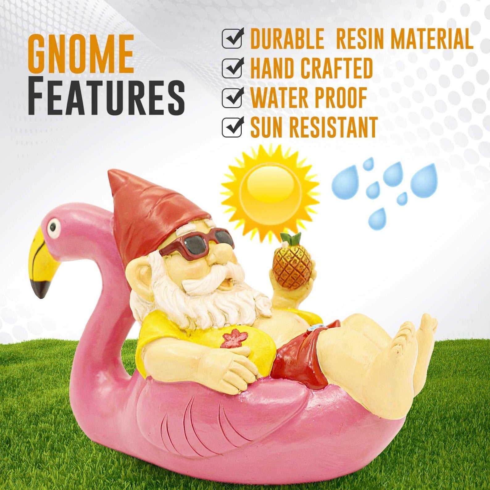🤶Spruce Up Your Outdoor Space - Chilling on a flamingo with her fashionable swimsuit, pearls and cocktail in hand is everybody’s favorite female Gnome, Gertrude!